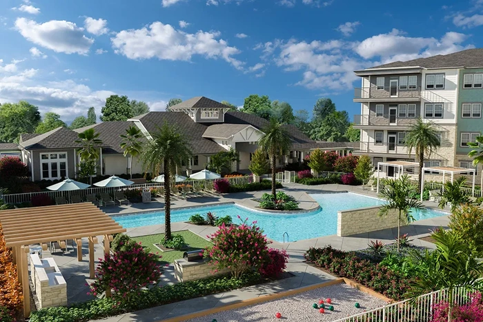 Leasing office for Amberlin Wiregrass Ranch, a resort-style, 55 and older active adult community in Wesley Chapel. This brand new senior community brings a maintenance-free lifestyle opportunity for Florida adults who are ready to live actively and without the everyday stresses of owning a home. Every corner of Amberlin, from the luxurious apartment interiors to the vibrant community event spaces, was designed to foster comfort, convenience, and connection for every senior resident.